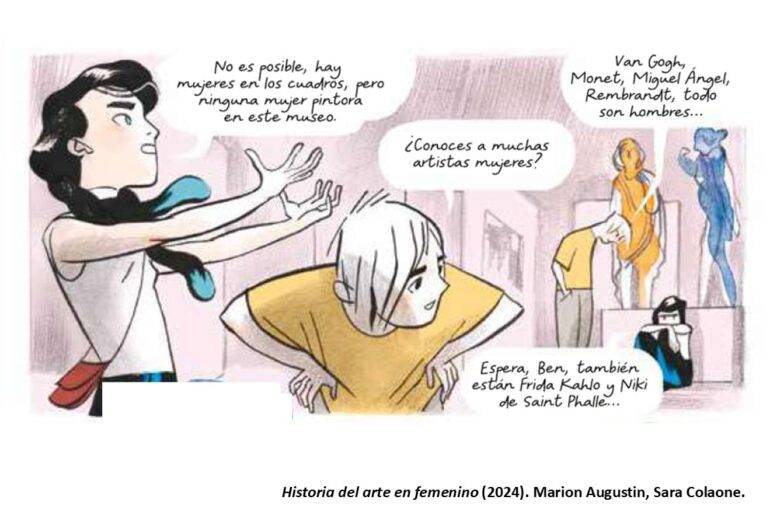 «[El cómic y la novela gráfica] se dirigen a todas las edades y a menudo son testimonio de una voluntad de transmitir de otra forma, de hacer emerger una generación diferente», recalca Morineau en el Prefacio de la novela gráfica Historia del arte en femenino (Histoire de l’art au féminin, 2024), publicado originalmente en francés por la editorial Casterman, y que en septiembre de 2025 se publica la versión castellana y catalana por la editorial Garbuix Books, con traducción en los dos casos de Montserrat Terrones, que actúa también como editora. Camille Morineau, especialista en conservación del patrimonio, es directora general y cofundadora de AWARE, acrónimo de Archives of Women Artists, Research & Exhibitions [Archivos de Mujeres Artistas, Investigación y Exposiciones]. Creada en 2014, la asociación tiene como objetivo «hacer visibles a las mujeres artistas de los siglos XVII al XXI produciendo y compartiendo contenido trilingüe gratuito (francés/inglés/japonés) sobre su trabajo en su sitio web». En el prefacio de la novela gráfica indicaba que en esa primera década se había recogido la vida y obra de 1.150 artistas.