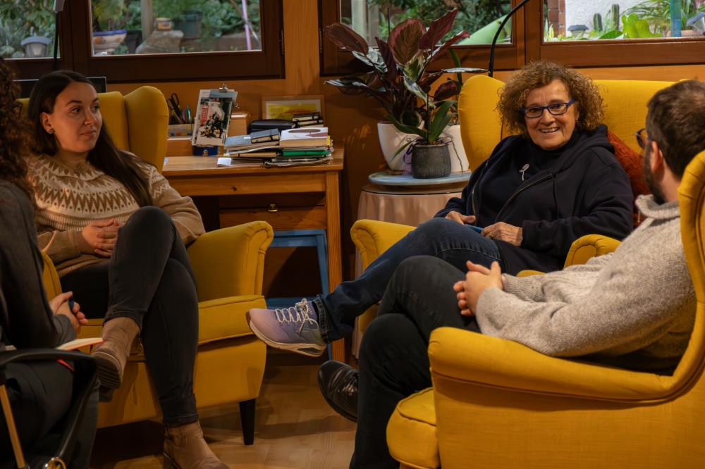 Los tres ríen reafirmando que era así, y Núria lo corrobora: “Tenías una paciencia de santa. Yo me despistaba muy fácilmente. Ella decía, ‘nu, venga, vamos’. Era muy cariñosa”. La maestra continúa: “Yo me decía, a Núria no le puedo pegar un grito porque si le pego un grito, no aclararemos nada, ella no avanzará y yo me pondré nerviosa. Ella tiene que ir a su ritmo. Por tanto, ¿qué he aprendido? Que cada uno tiene un ritmo. Jordi era un movido, con una buena cosa, que te hacía unas preguntas interesantísimas. Había días que me iba de la escuela, entonces no había Internet ni ChatGPT, y yo iba directa a la biblioteca Torras i Bages de Vilafranca a buscar libros, si no los teníamos en la escuela. Los llevaba y le decía a Jordi: mira, aquí lo tienes, ya lo puedes buscar”.