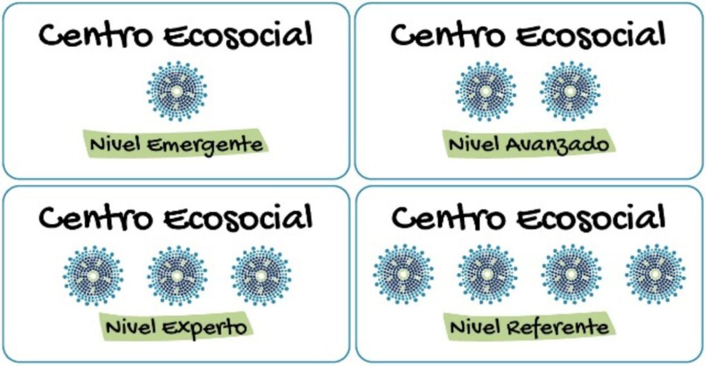 El Sello de Centro Ecosocial consta de cuatro niveles: Centro Ecosocial Emergente, Avanzado, Experto y Referente, permitiendo el reconocimiento de los centros implicados y generando un proceso de avance y mejora que motive e involucre realmente a los centros escolares.